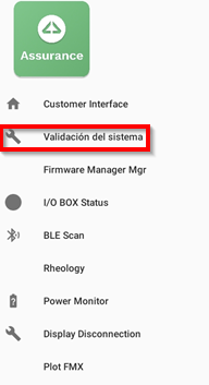 Presione el botón de menú en la parte superior izquierda y seleccione Validación del Sistema