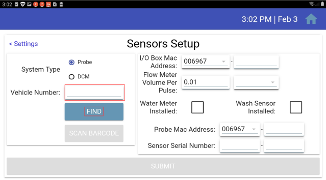 Be sure System Type: Probe is selected and enter the vehicle number in the Vehicle Number field. Then tap the Find button