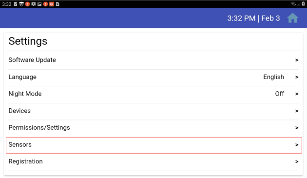 Find and tap Sensor Setup